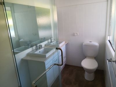Three generous bedrooms, all fitted with with built in cupboards, two have air conditioning.