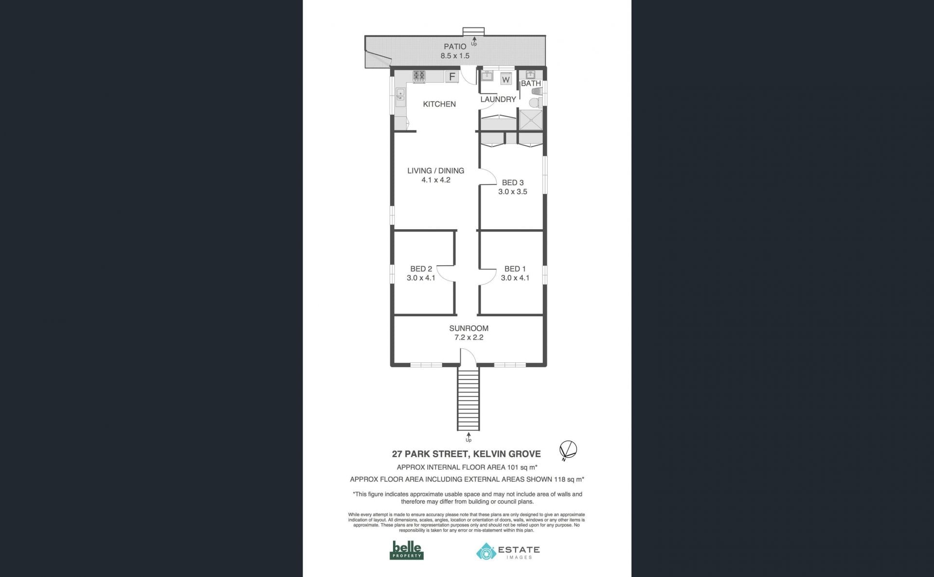 - 3 bedrooms, 1 bathroom, enclosed verandah/sunroom