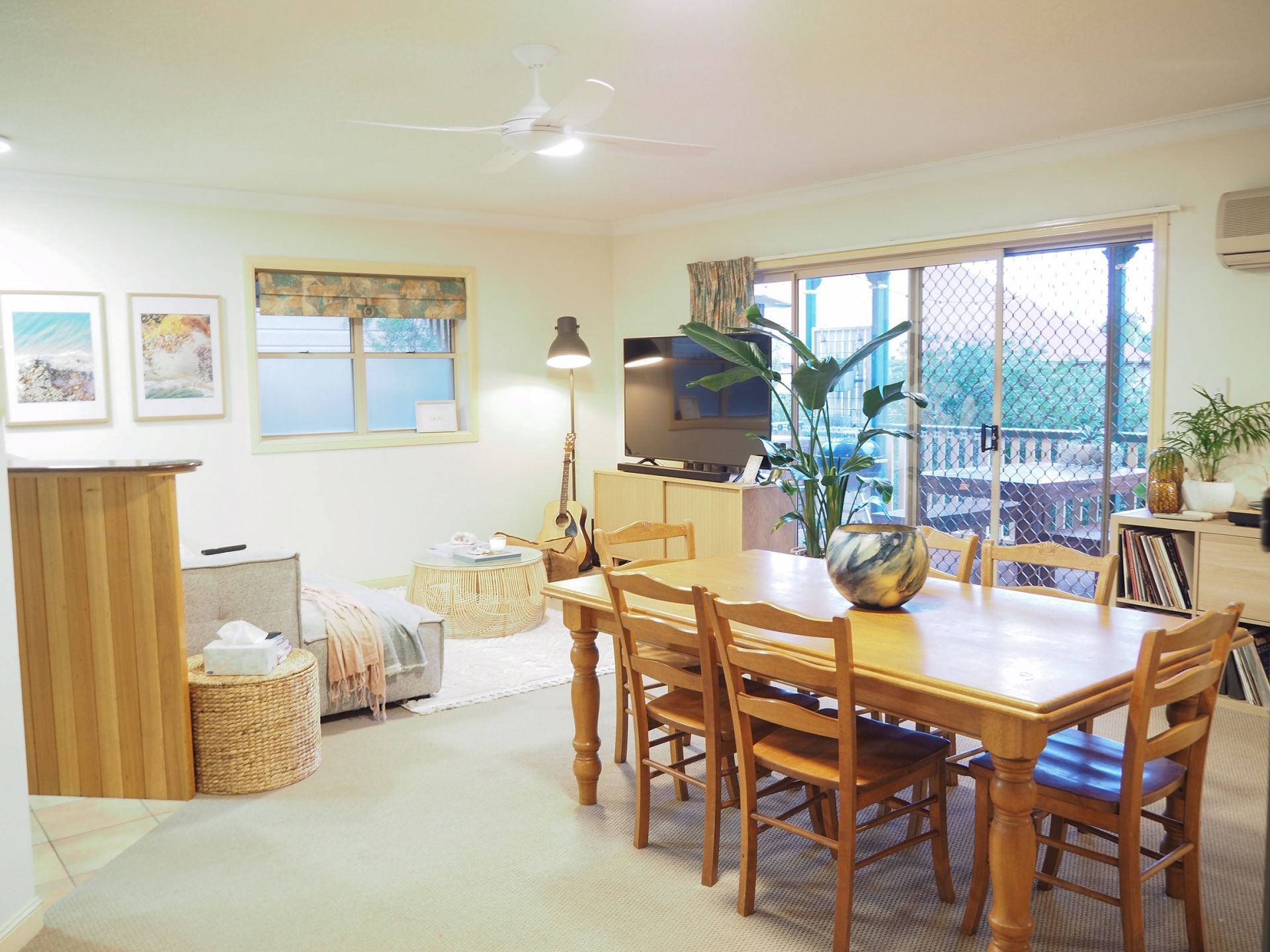 Light-filled combined lounge and dining area with air conditioning