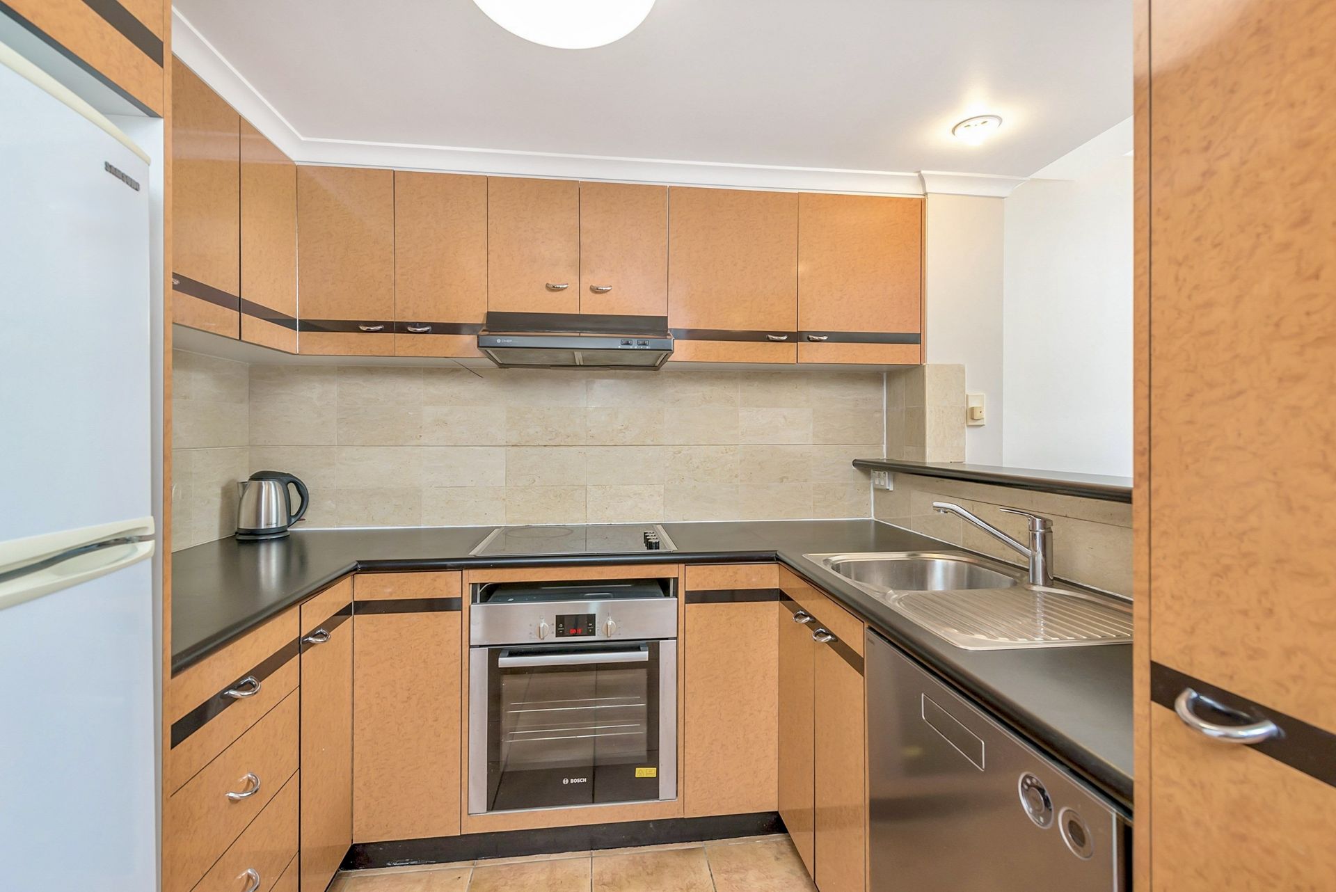 • Modern kitchen with ample storage, dishwasher, and rangehood.