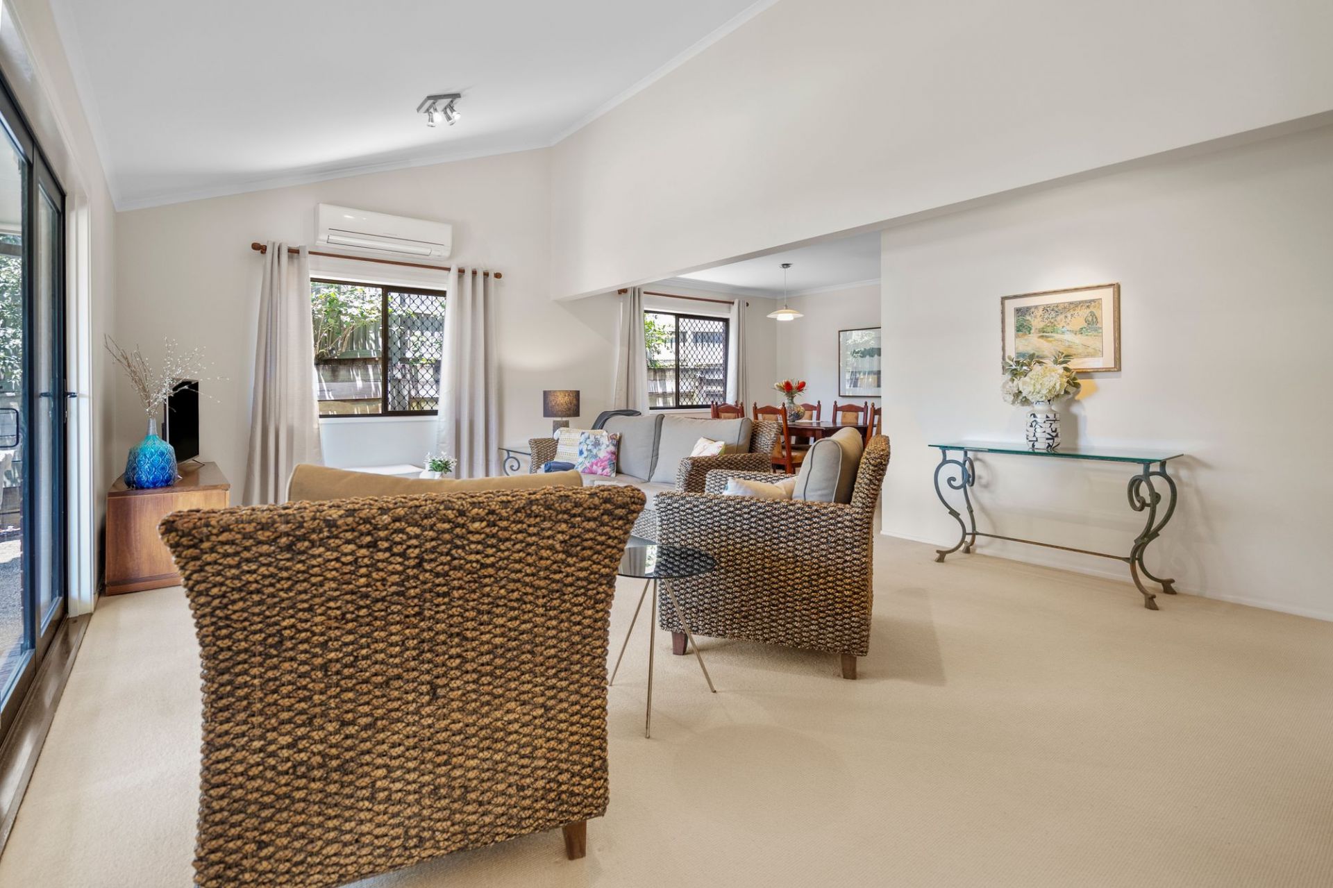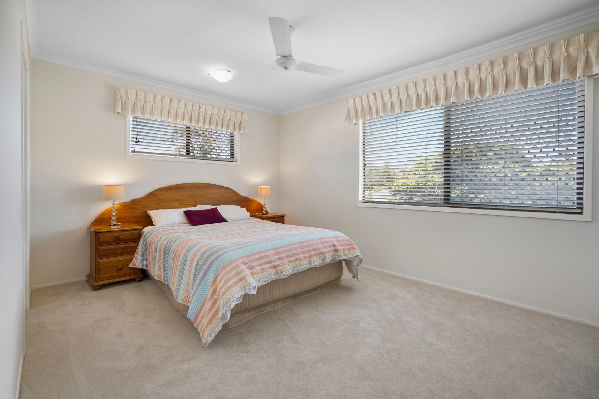 Upstairs has 4 newly carpeted bedrooms, all a generous size, all air-conditioned. The Master bedroom has a walk-in robe and 2 way access to the bathroom, plus there's a separate toilet.